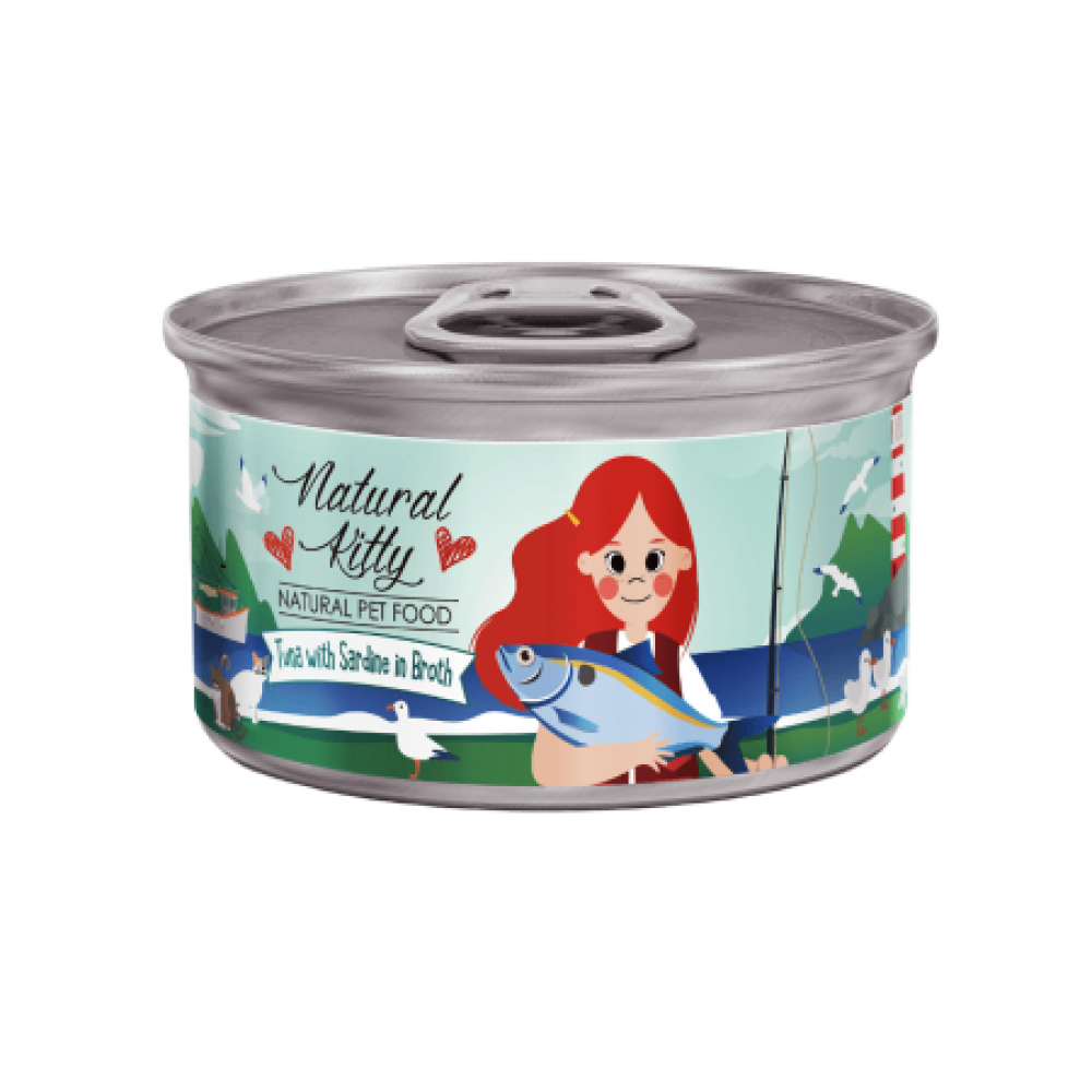 ناتشورال كيتي معلبات تونة مع السردين في المرق (للقطط الصغيرة والبالغة) 80g