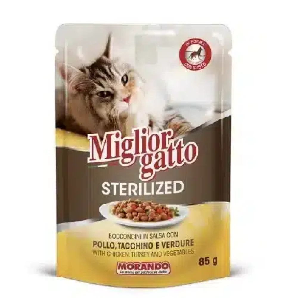 ميجلور طعام رطب للقطط المعقمة بالدجاج ولديك الرومي والخضار 85 غ