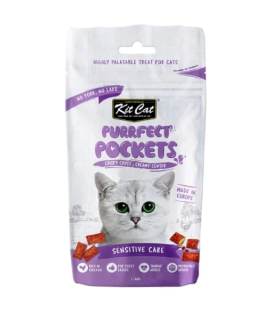 كت كات مكافآت للقطط مقرمشة محشوة بالكريمة للعناية الحساسة بنكهة الدجاج 60g