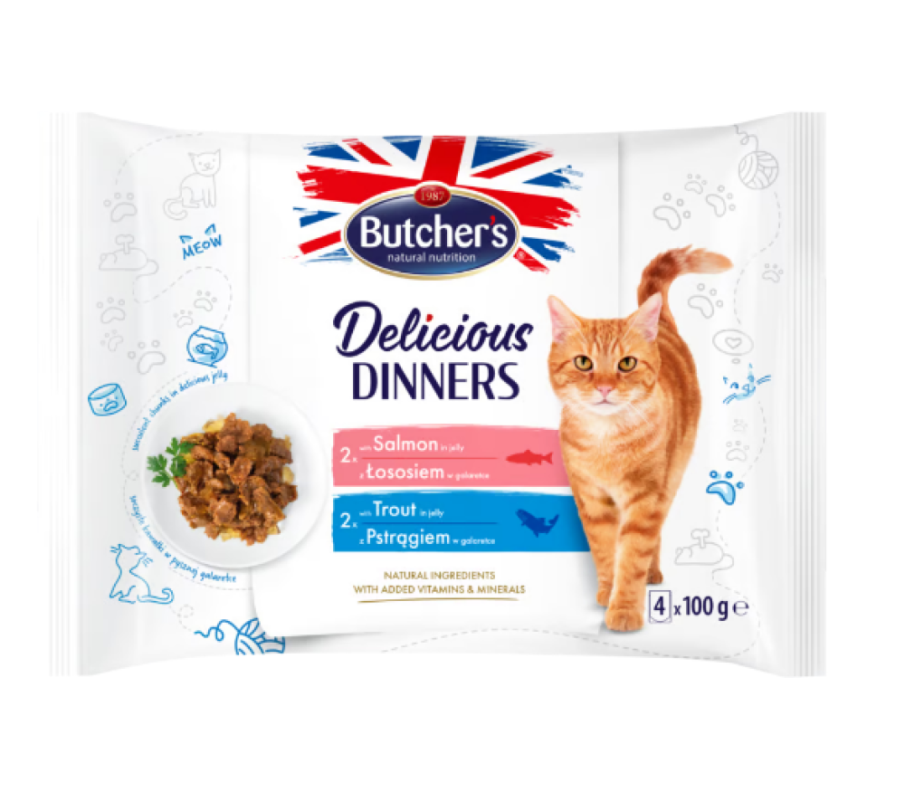 بوتشرز اظرف طعام رطب للقطط بالجيلي 4×100 غ 2 سالمون + 2 سالمون