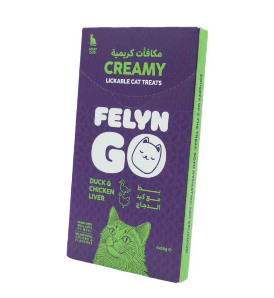 فيلاين قو مكافئات كريمه بنكهة البط و كبد الدجاج للقطط 4×15 جرام