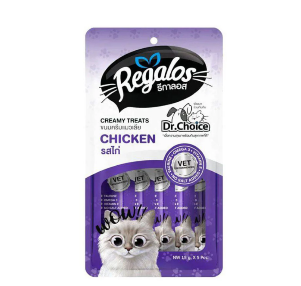 ريقالوس مكافآت كريمية للقطط بنكهة الدجاج 15gx5