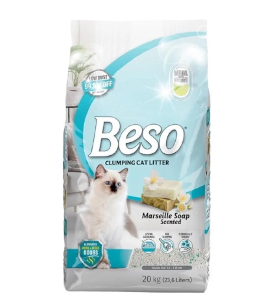 بيسو رمل للقطط برائحة الصابون 20kg ( 23.6 لتر )