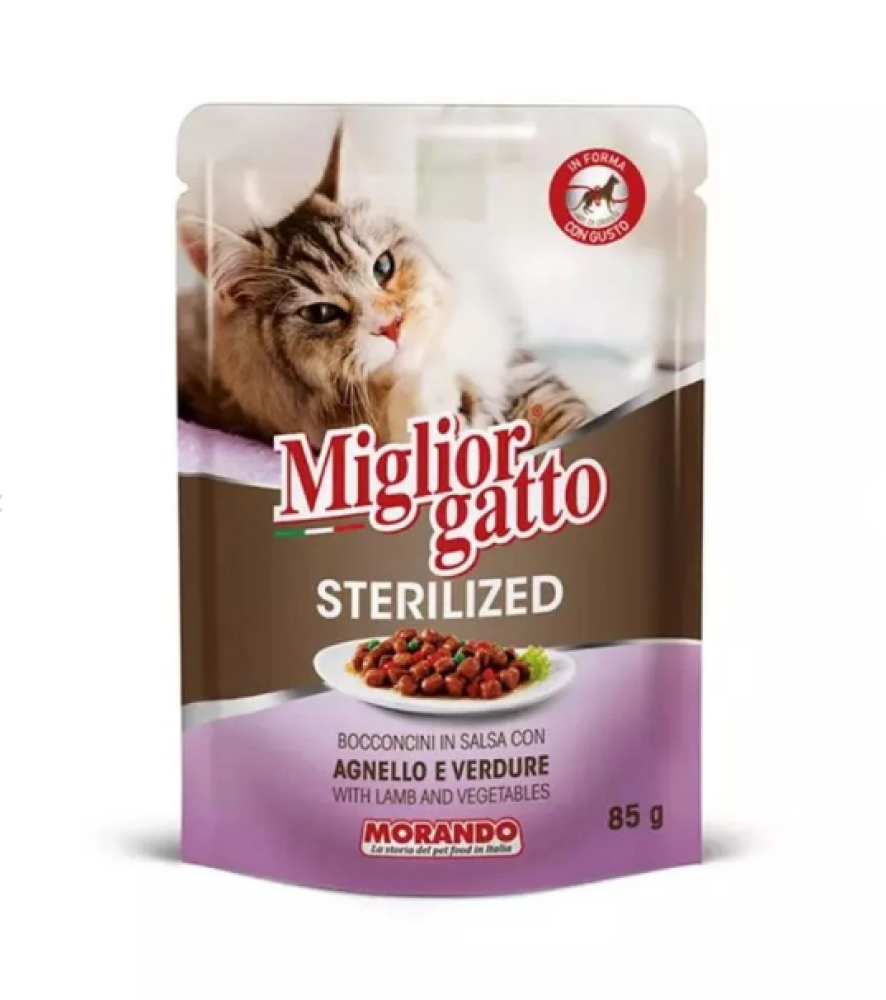 ميجلور جاتو اظرف للقطط المعقمة بلحم الضأن والخضروات 85g