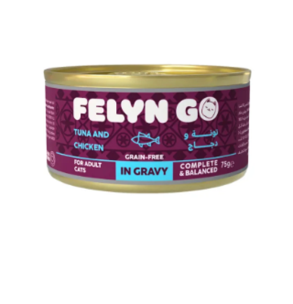 فيلاين قو معلبات بالتونة والدجاج في مرق طعام رطب للقطط 75 جرام