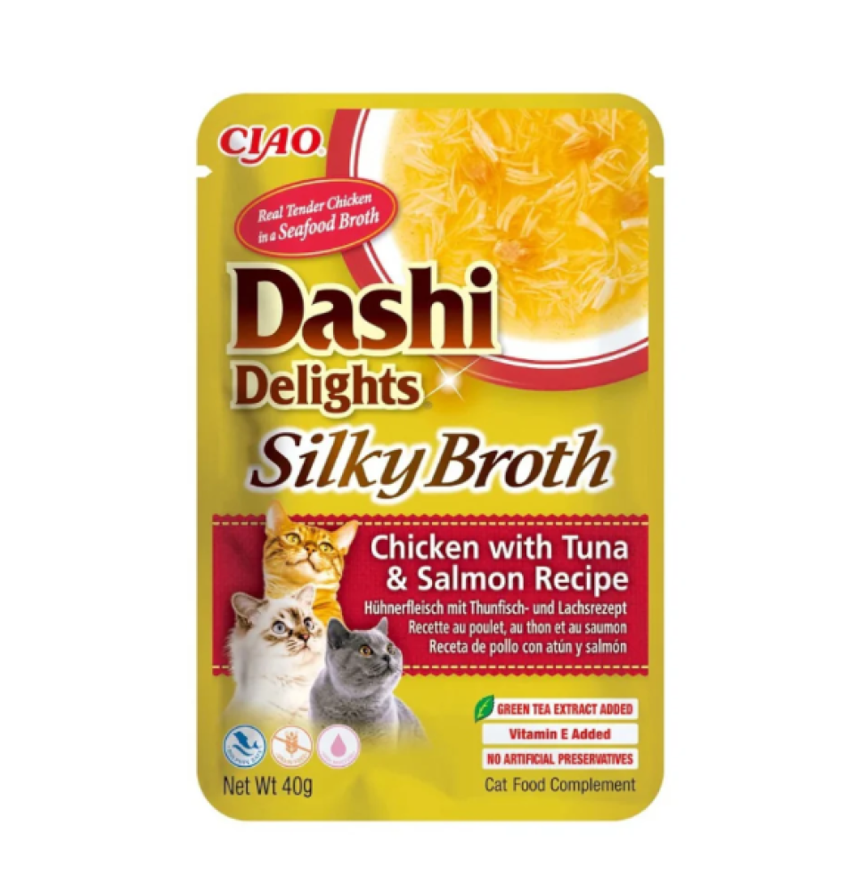 اينابا داشي ديلايتس طعام رطب للقطط بنكهة الدجاج والتونة مع السالمون في المرق 40غ