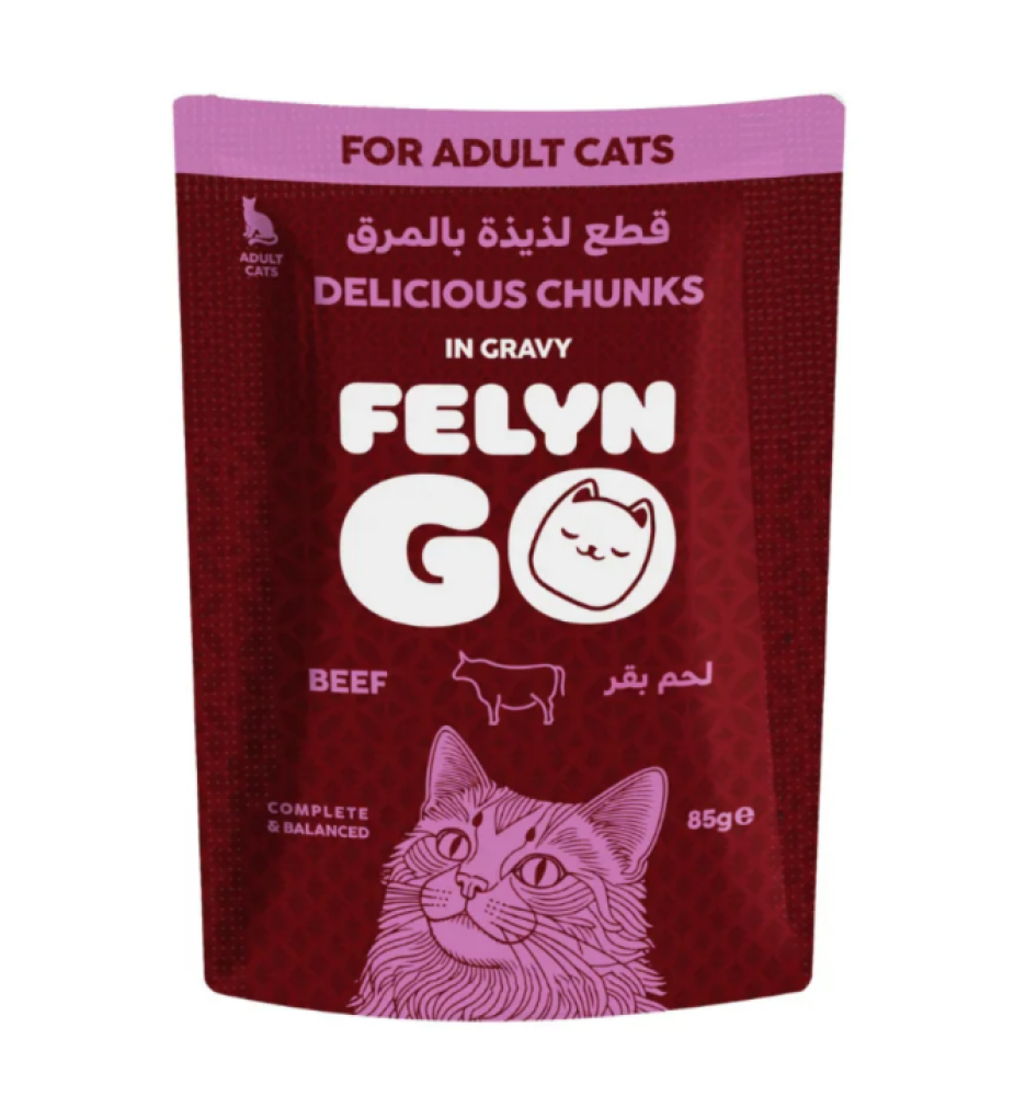 فيلاين قو طعام رطب للقطط قطع اللحم البقري بالمرق 85g