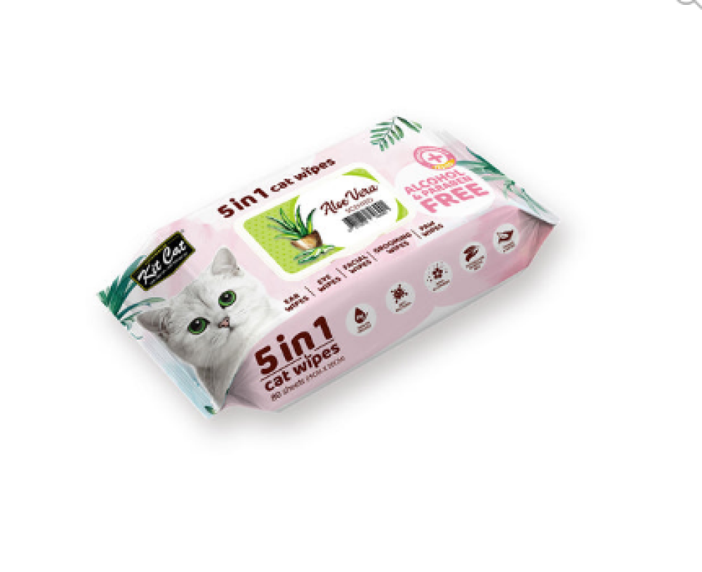 كت كات مناديل معطرة للقطط 5 في 1 برائحة الصبار 80 منديل