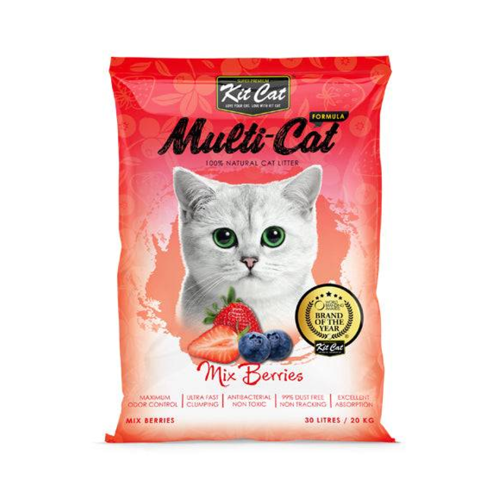 كت كات رمل للقطط ملتي كات برائحة التوت والفراولة 30 لتر