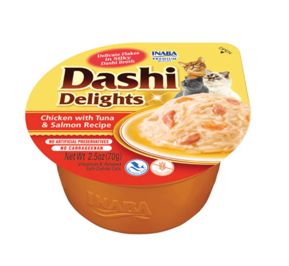 اينابا داشي ديلايتس طعام رطب للقطط بنكهة الدجاج والتونة مع السالمون 70غ
